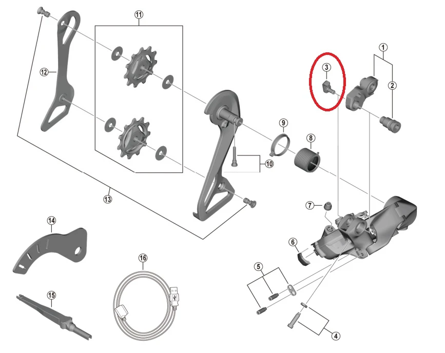 Shimano Dura Ace RD-R9250/Ultegra RD-R8150/Shimano 105 RD-R7150 Schaltwerk-KabelfĂŒhrung.